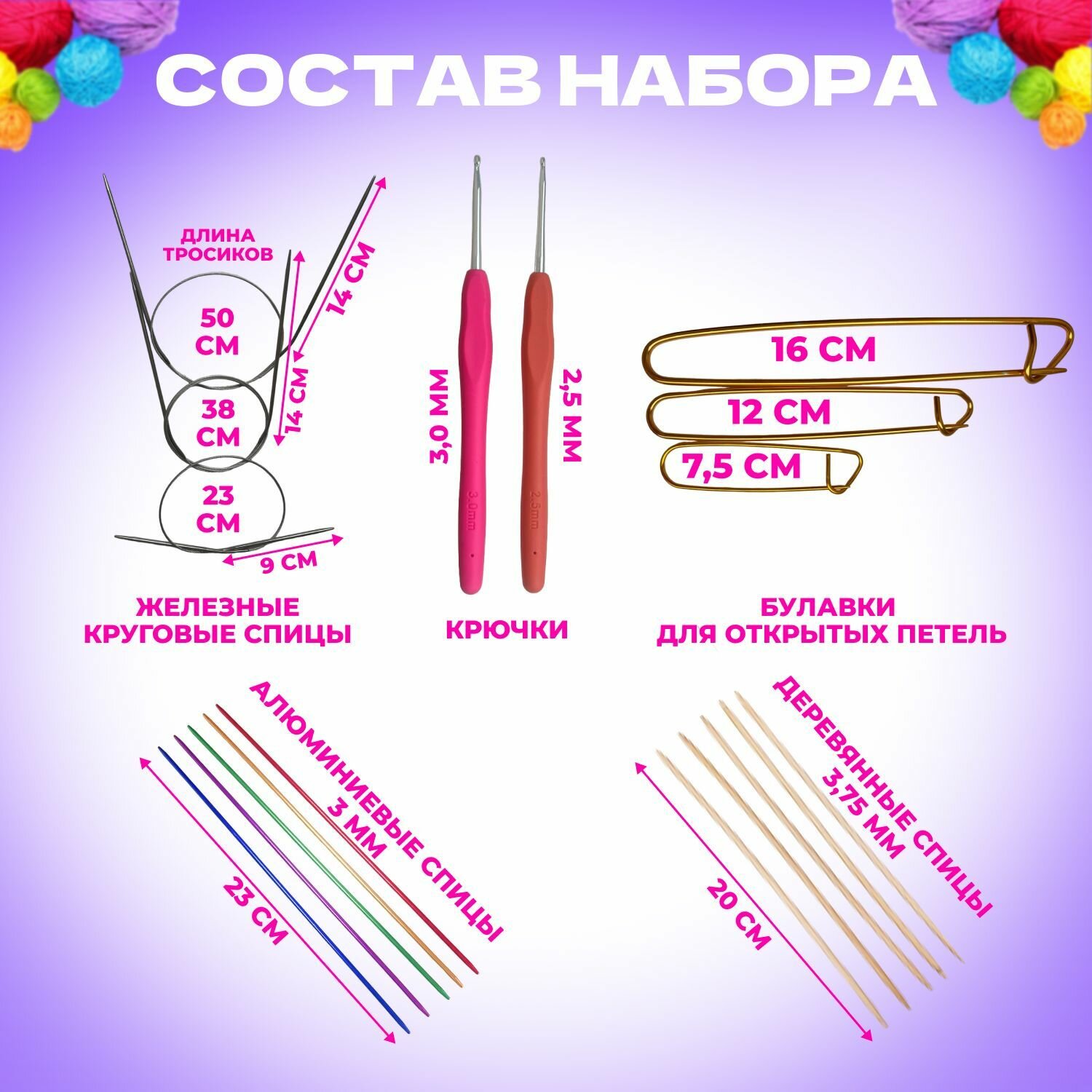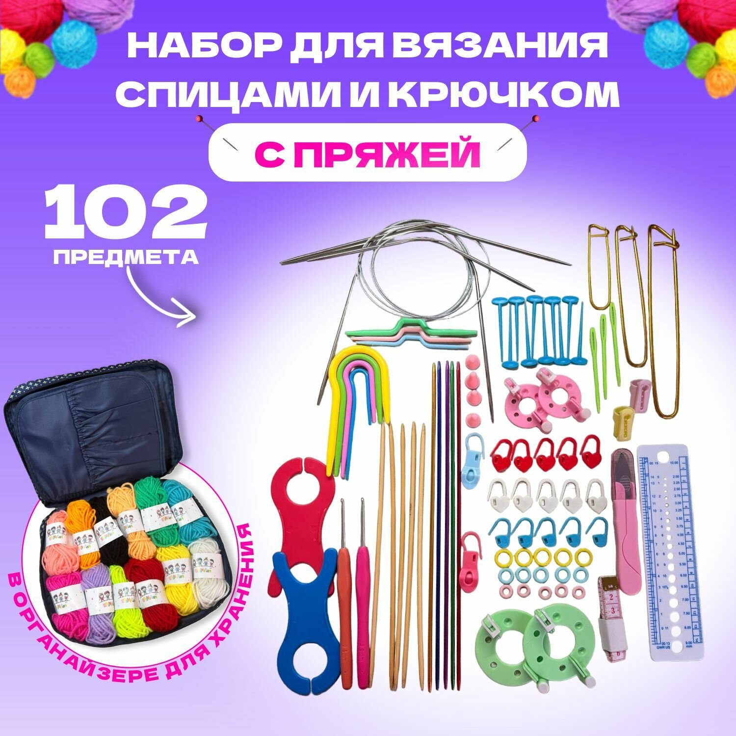 Набор спиц и крючков для вязания с пряжей 102 предмета в органайзере, набор для творчества и рукоделия информация: