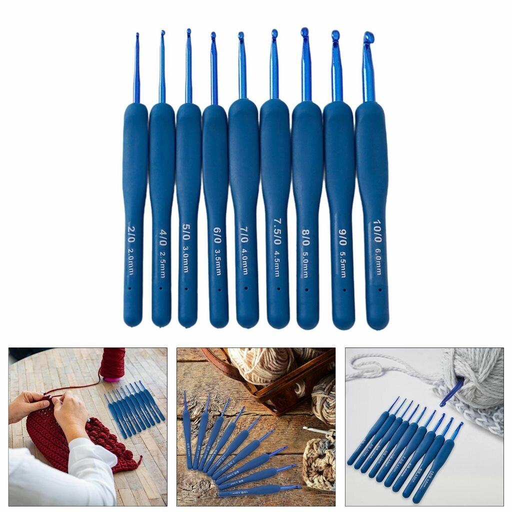 10 цен на Набор для вязания крючком с синей силиконовой ручкой в упаковке из 9 штук