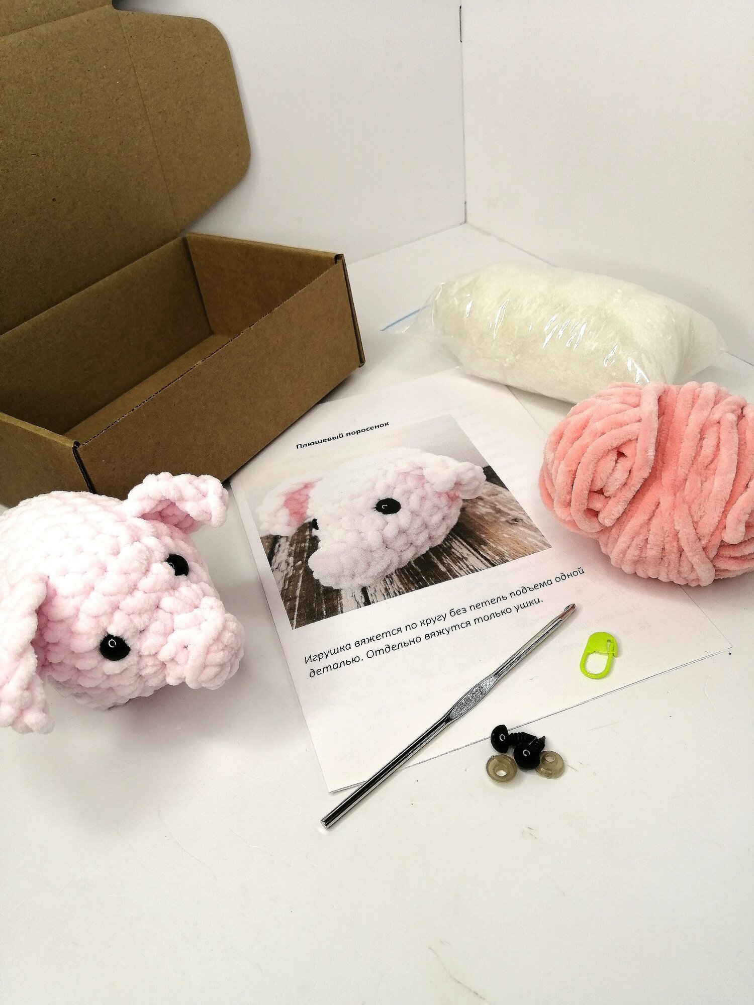Набор для вязания крючком "Плюшевый Поросенок", светло-розовый, от 10 лет информация: