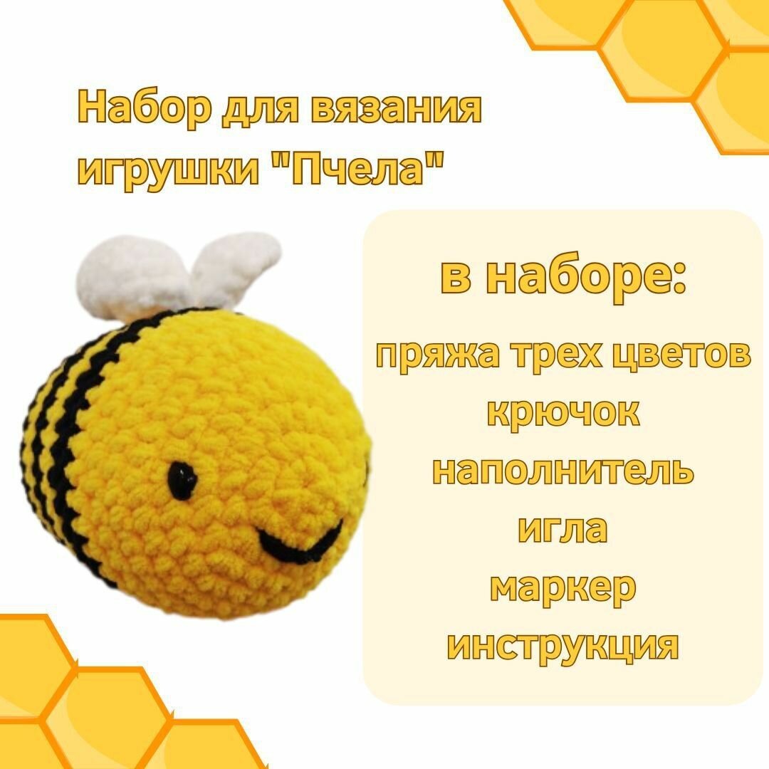 10 цен на Набор для вязания плюшевой игрушки крючком для начинающих "Пчела" с печатной инструкцией
