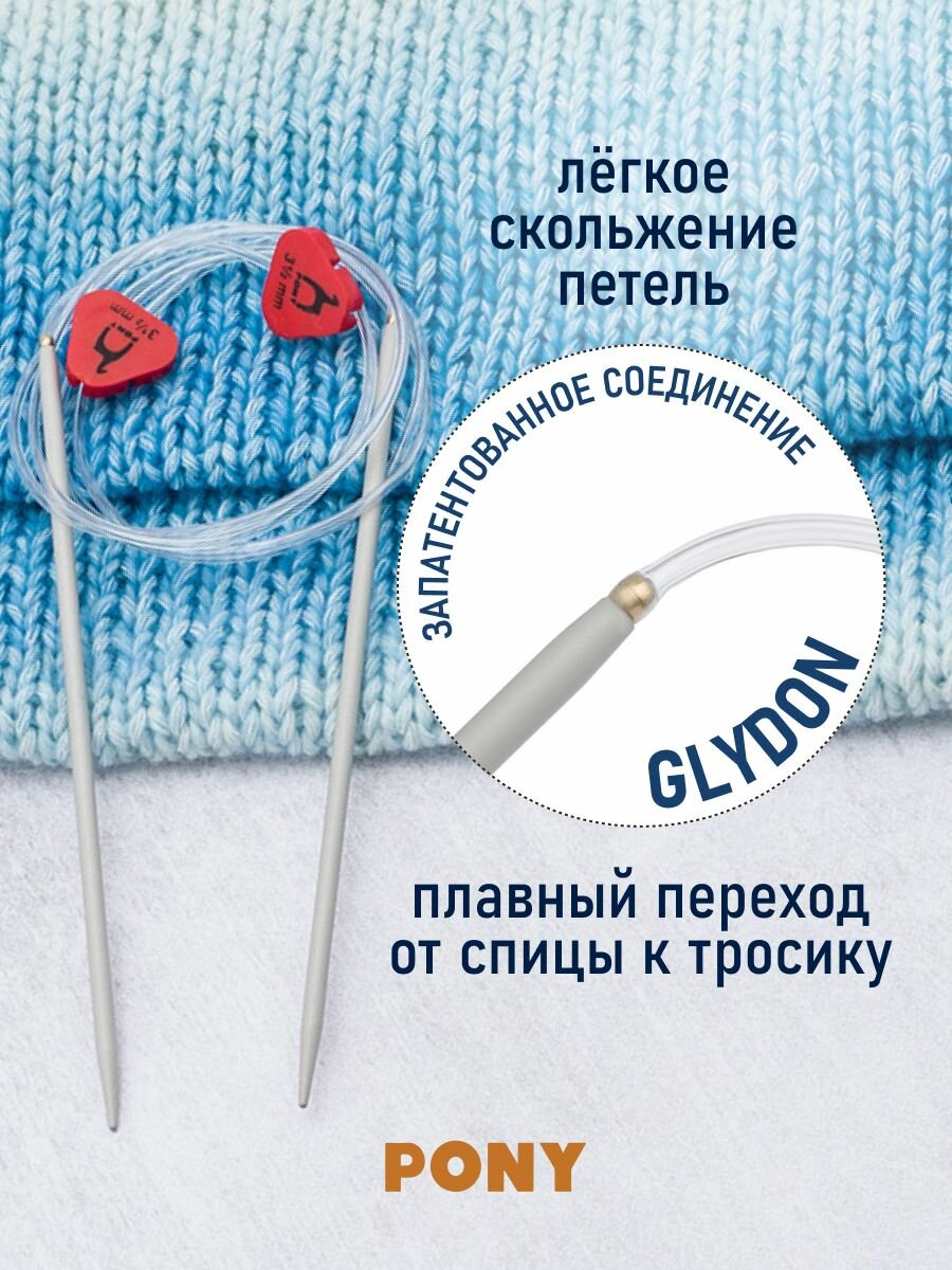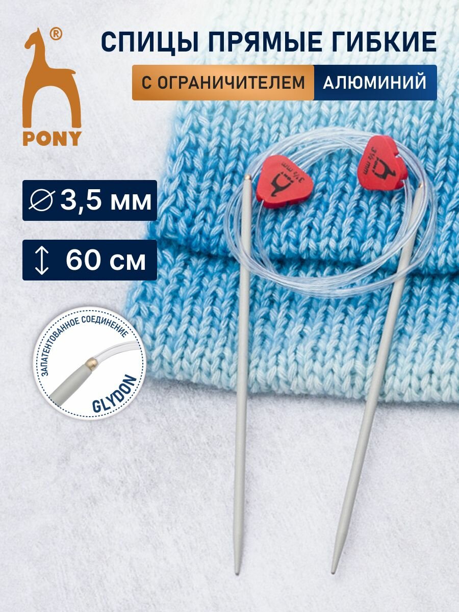 Спицы вязальные гибкие с фиксатором 3,5 мм*60 см, алюминий, 2 шт, PONY, 65207 (65607) информация: