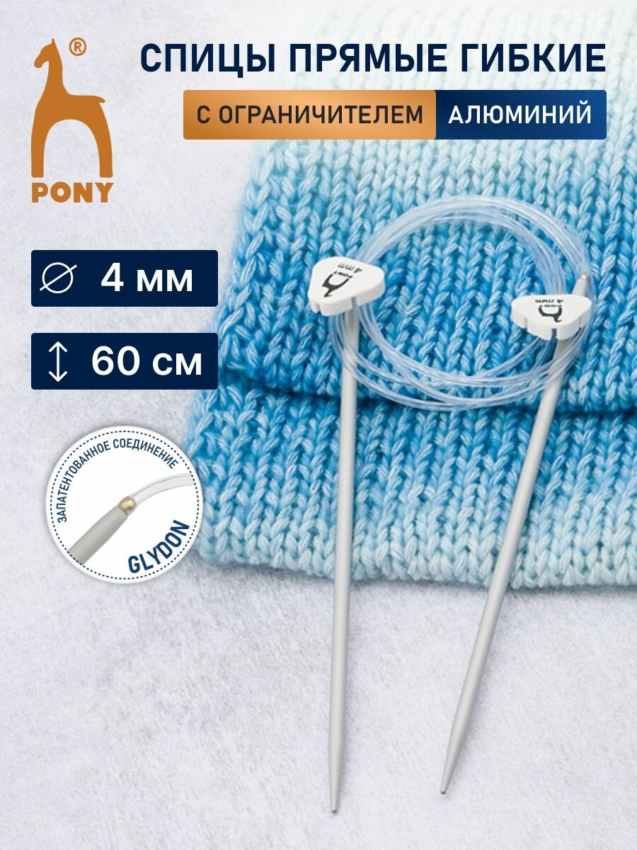 Спицы вязальные гибкие с фиксатором 4 мм*60 см, алюминий, 2 шт, PONY, 65209 (65609) информация: