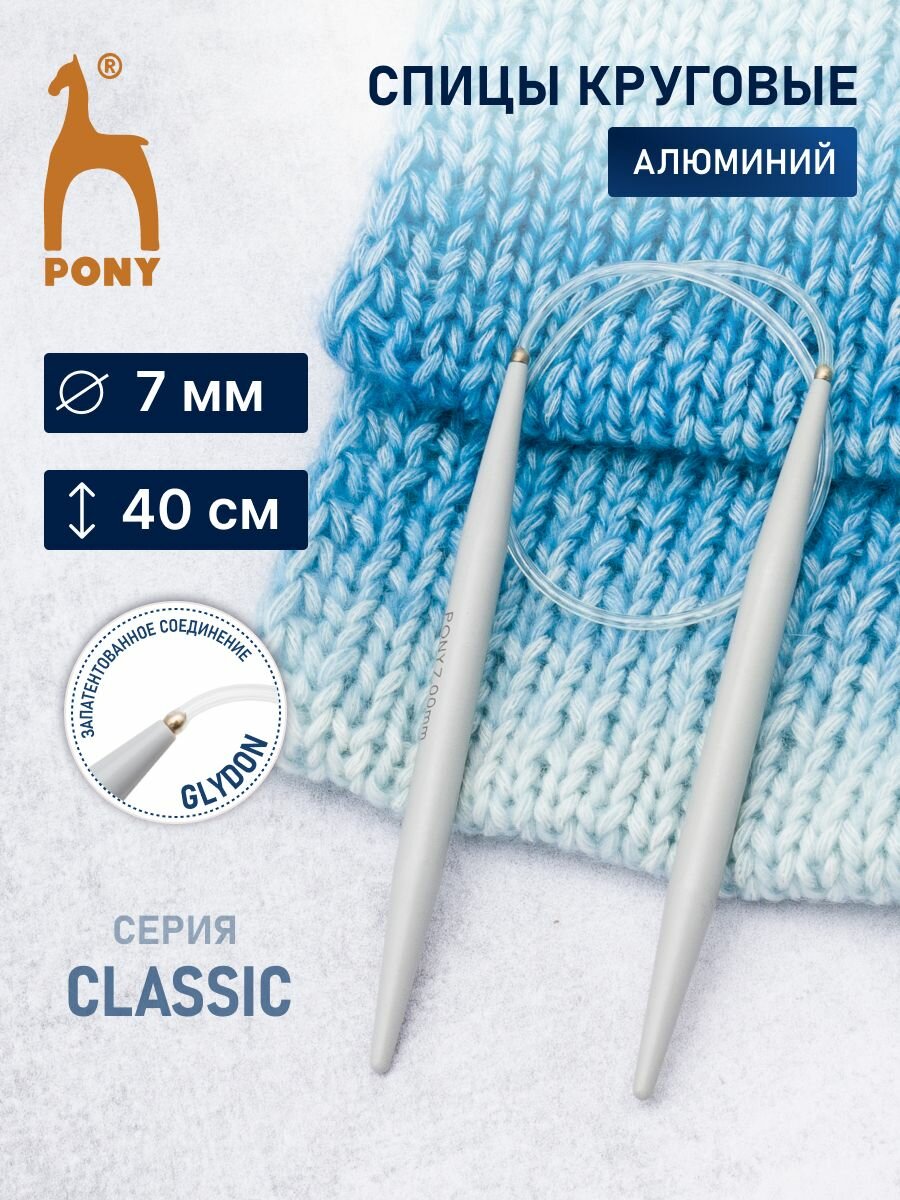 10 цен на Спицы для вязания круговые 7 мм*40 см, алюминиевые, PONY Classic
