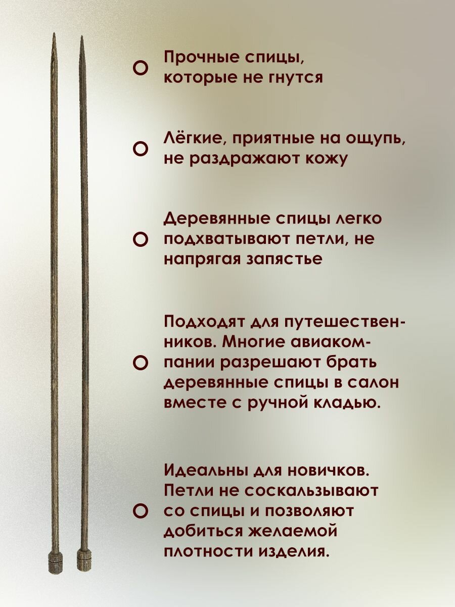 Спицы вязальные прямые PERFECT 5 мм*35 см, дерево, 2 шт, PONY информация: