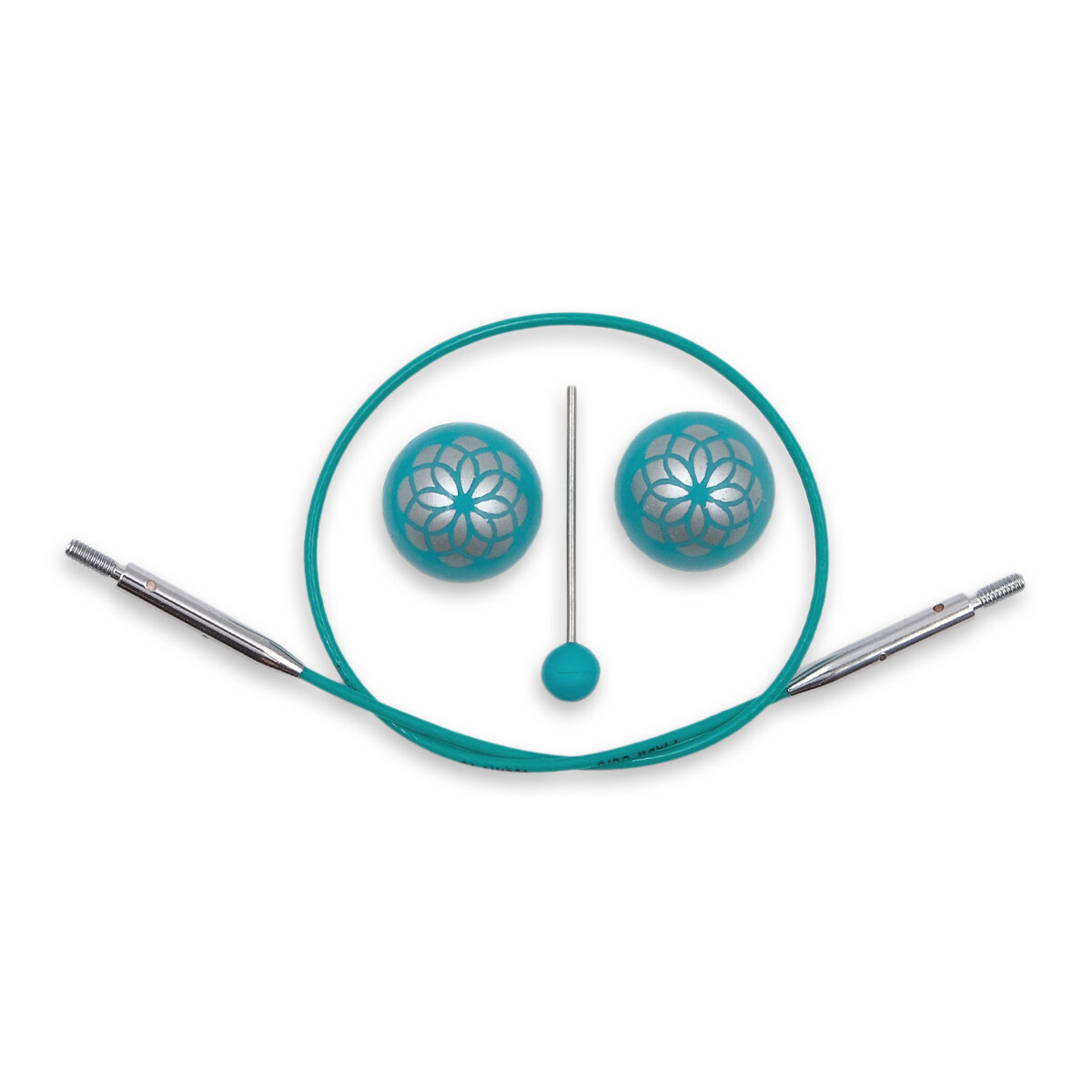 Тросик для съемных спиц Mindful, 28 см, нержавеющая сталь с нейлоновым покрытием, бирюзовый, KnitPro 395 ₽