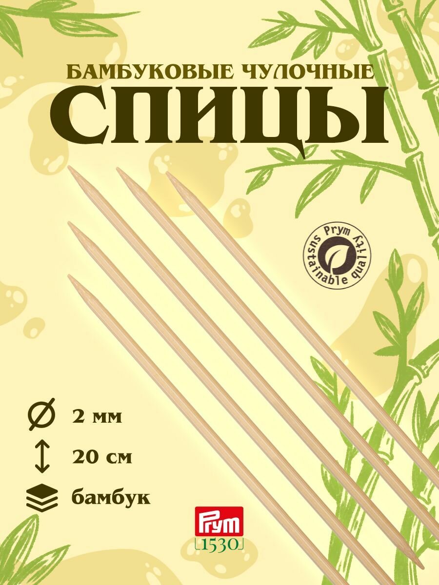 Спицы чулочные для вязания 2 мм*20 см, 5 шт, бамбуковые, Prym информация: