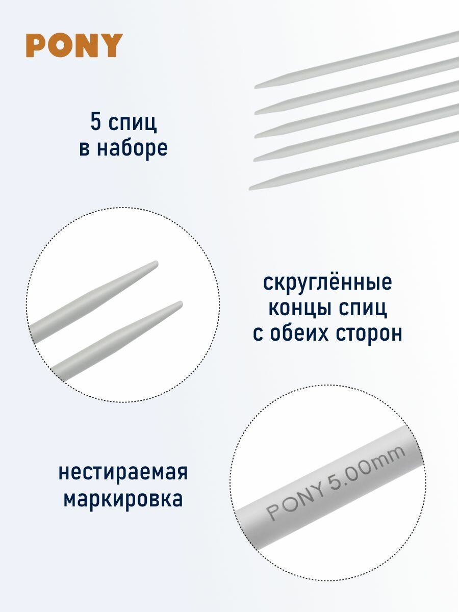 10 цен на Спицы чулочные для вязания 5 мм*20 см, 5 шт, алюминиевые, PONY