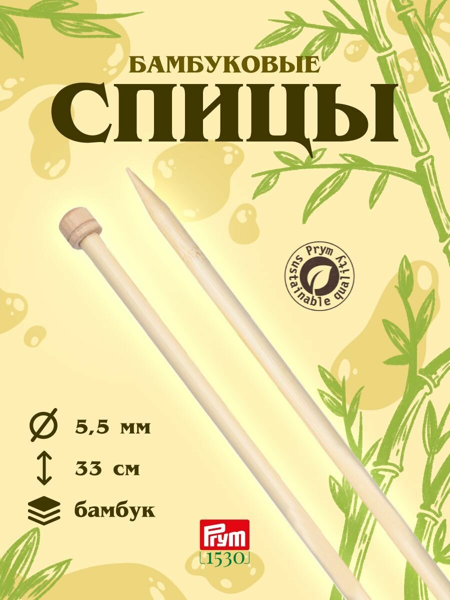 Спицы для вязания прямые 5,5 мм, 33 см, 2 шт, бамбуковые, Prym информация: