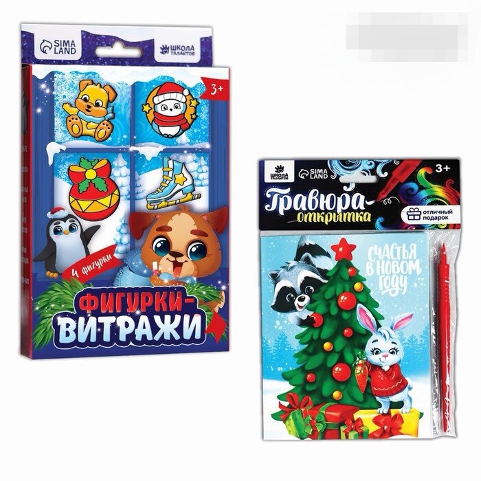 10 цен на Набор для творчества. Витражные фигурки и гравюра-открытка «Новогодние зверята»