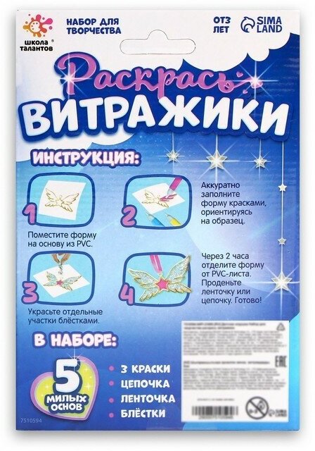 Набор для творчества «Раскрась витражики. Кошечки» 5 форм, 7510594 информация: