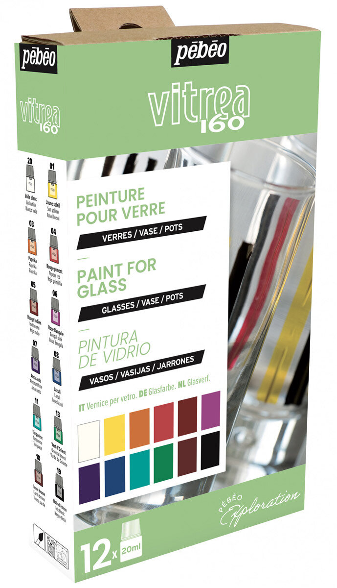 Набор красок по стеклу Pebeo Vitrea 160 "Исследование", под обжиг, глянцевые 12 цв. по 20 мл информация: