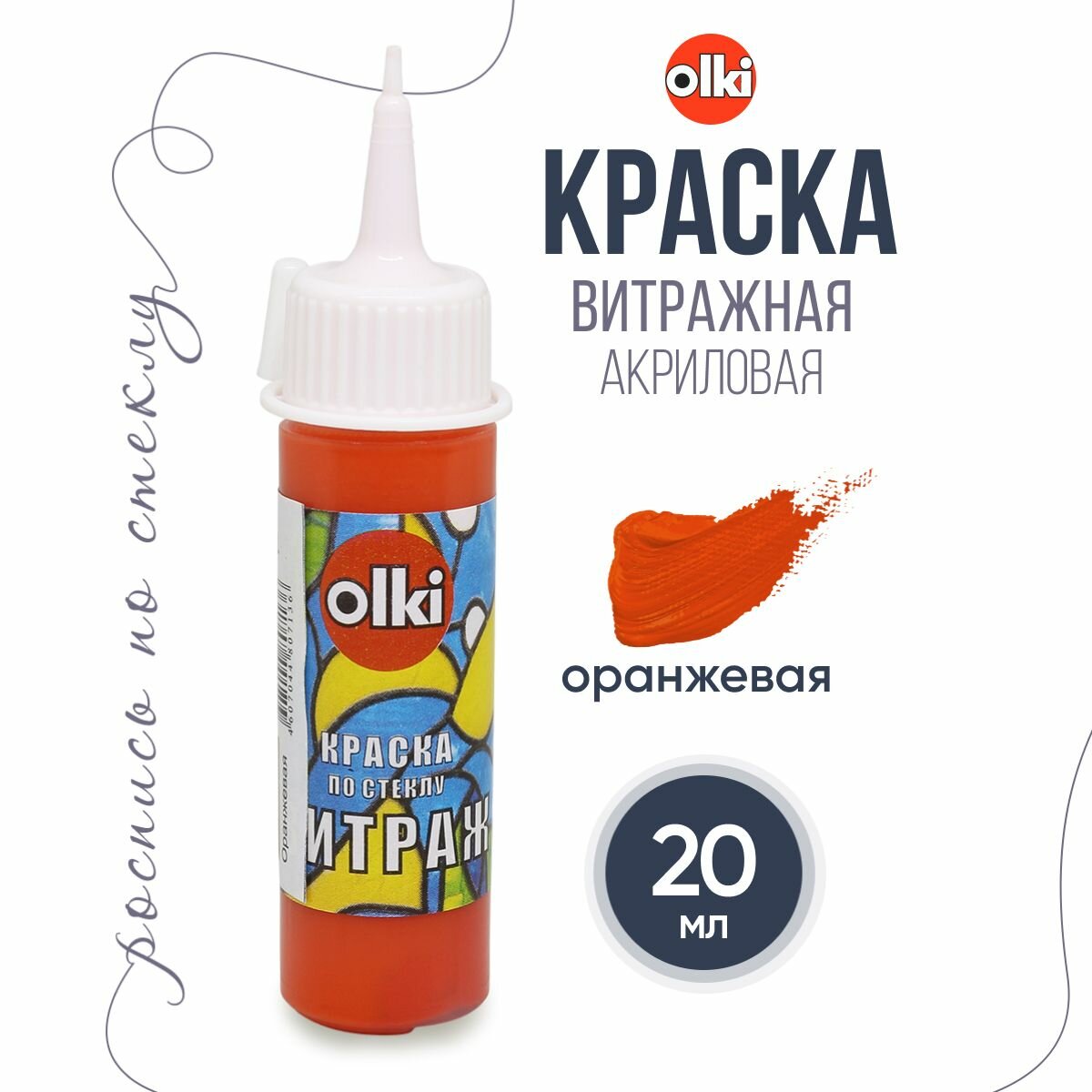 Краска акриловая витражная для росписи по стеклу Olki, 20 мл (7136 оранжевый) информация: