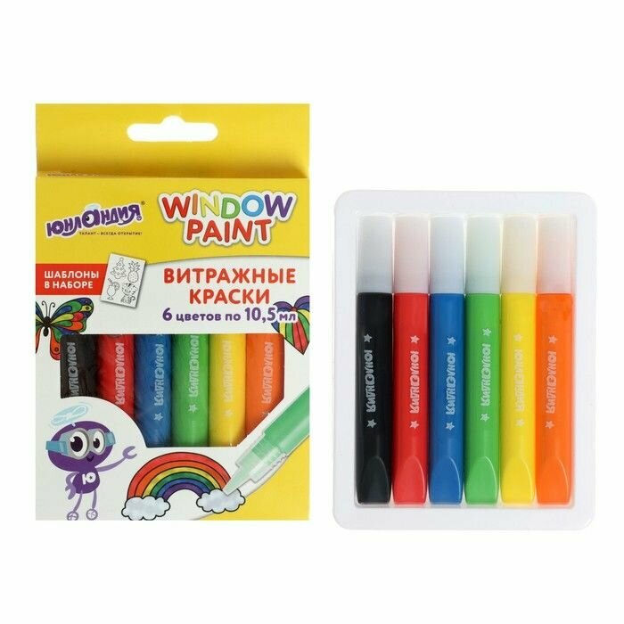 Краска по стеклу витражная Аппликация. набор 6 цв*10.5-11мл . шаблоны, 191758 информация: