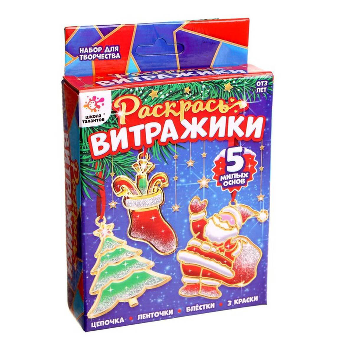 Витражи Школа талантов - Украшения на ёлку, со стразами и блёстками, 5 шт в наборе информация: