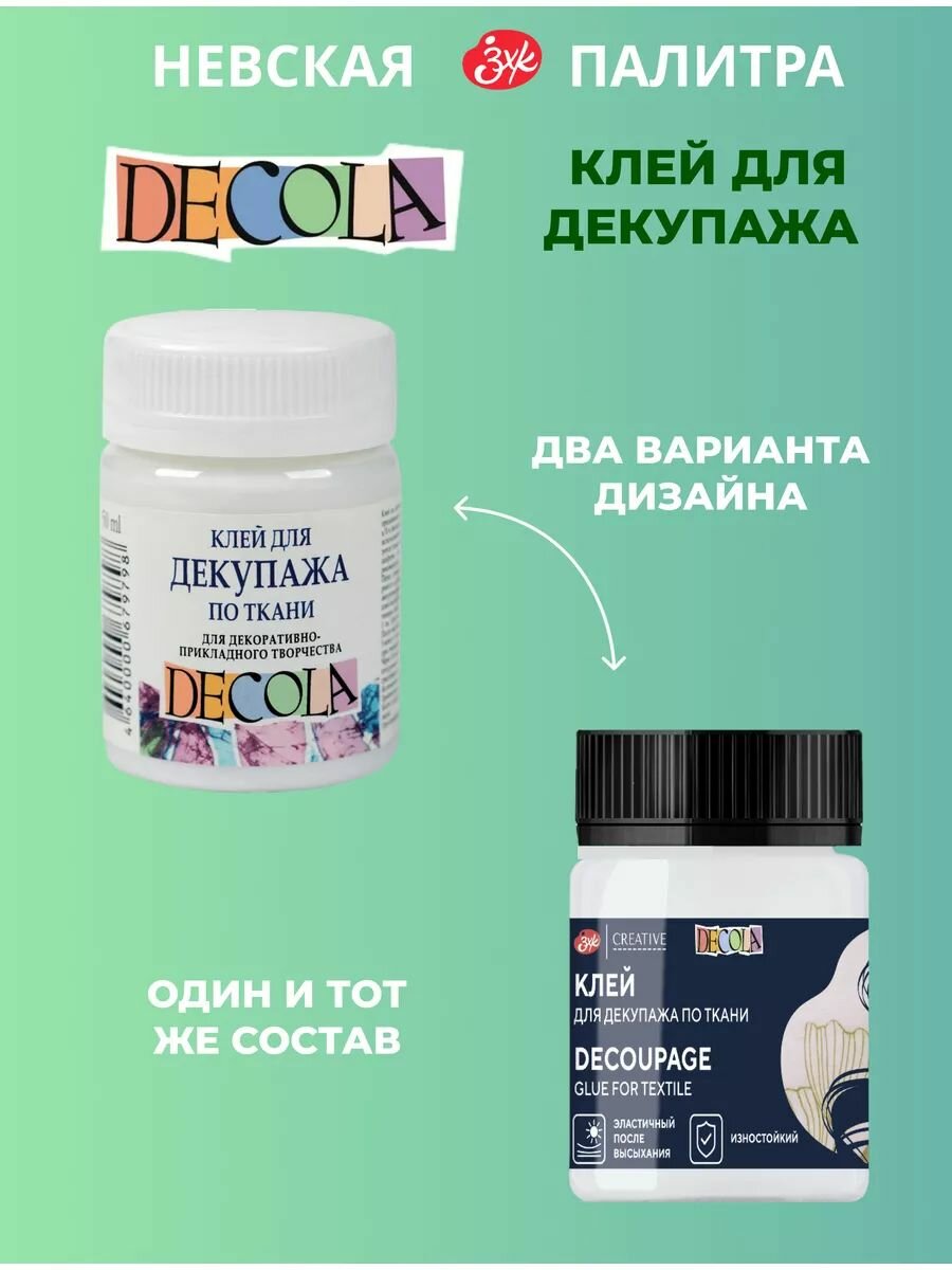 Клей для декупажа по ткани Невская палитра DECOLA, 50 мл 8628956 информация: