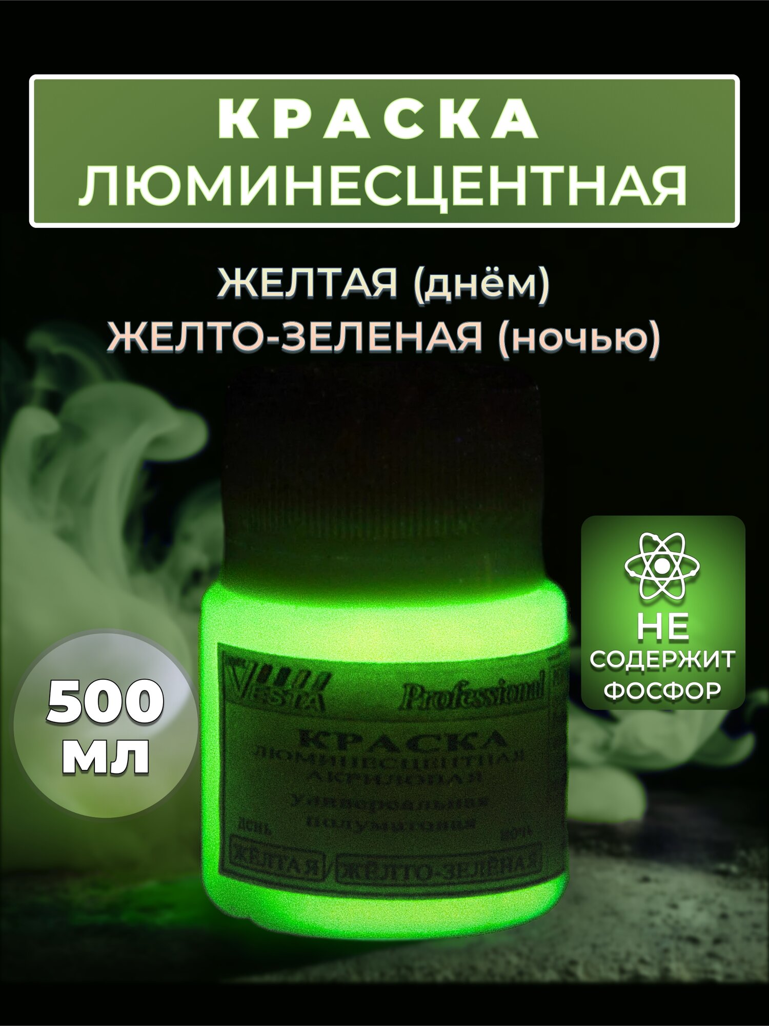 Краска люминесцентная "VESTA PROFESSIONAL" желтая / желто-зеленая (день / ночь) - 500 мл информация: