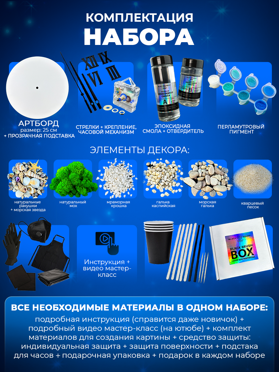 Набор для творчества BLACK BRUSH Часы, эпоксидная смола, для рисования информация:
