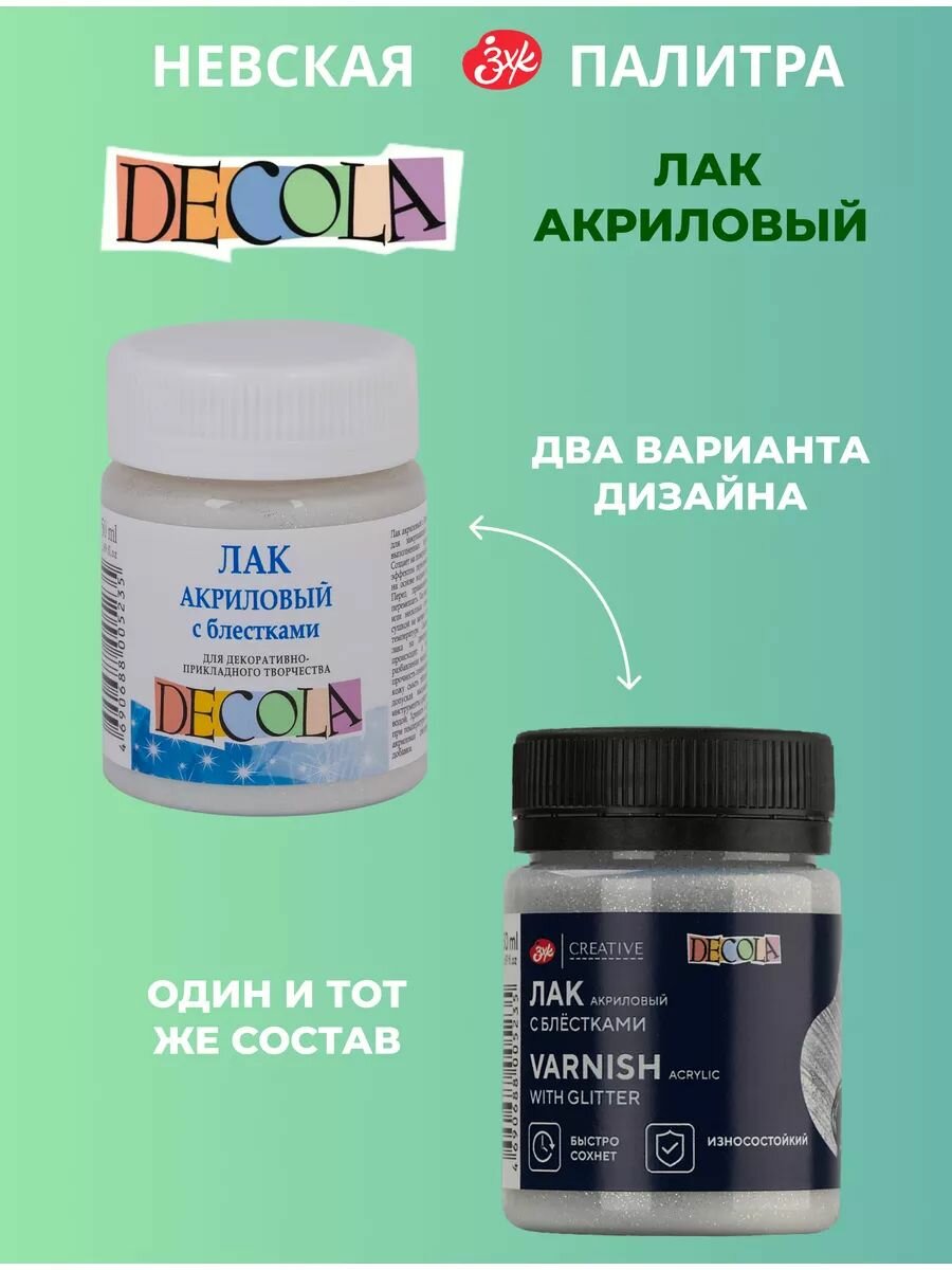 Лак акриловый с блестками Невская палитра DECOLA, 50 мл 5828958 информация: