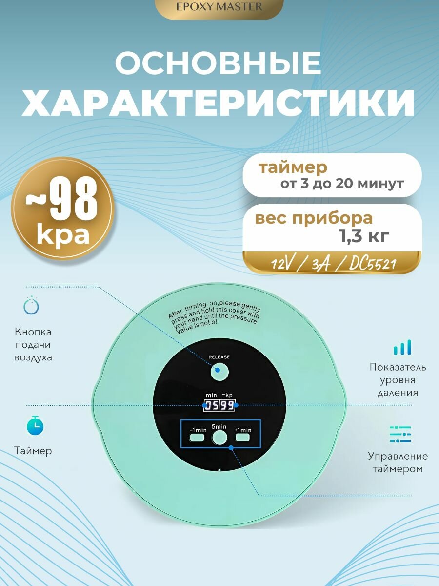 Вакуумный дегазатор для эпоксидной смолы EPOXYMASTER Портативная вакуумная камера для удаления пузырьков информация: