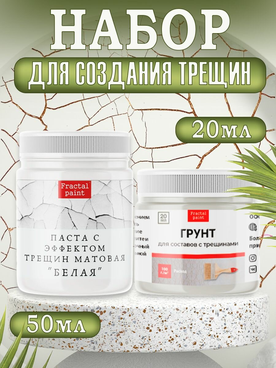 10 цен на Комбо для создания трещин (белая паста 50 мл + грунт 20 мл), Fractal Paint