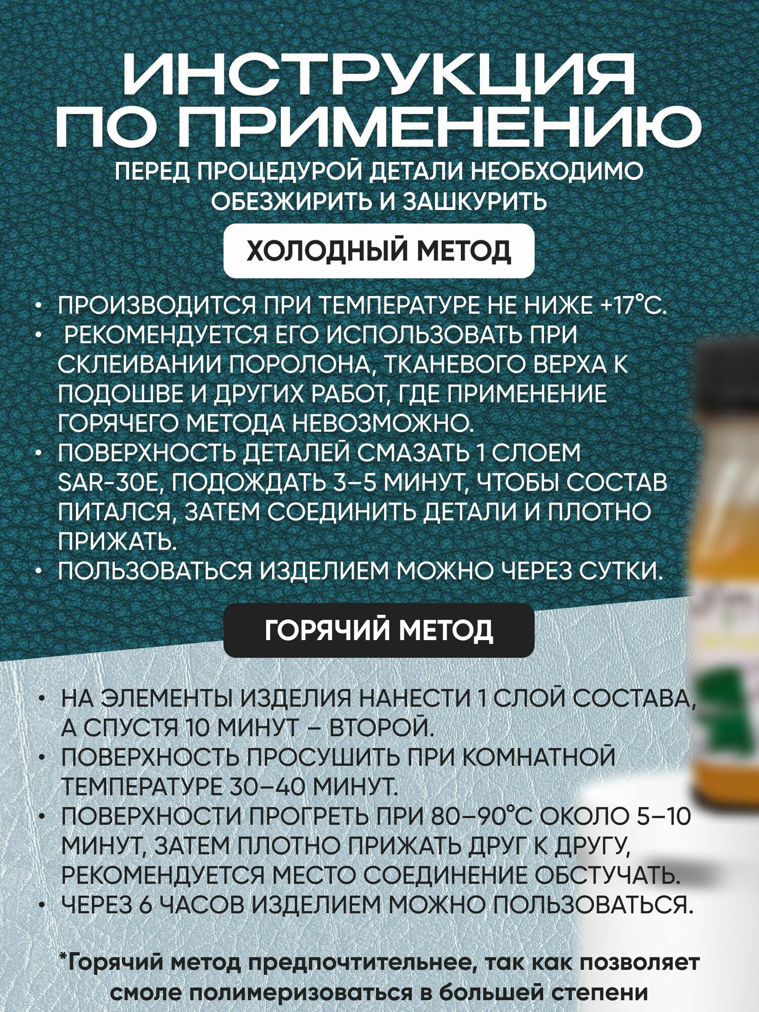 Клей для обуви и кожи SAR 306 Десмокол 100мл, партия 01.2024, термоактивируемый полиуретановый- 100мл 343 ₽