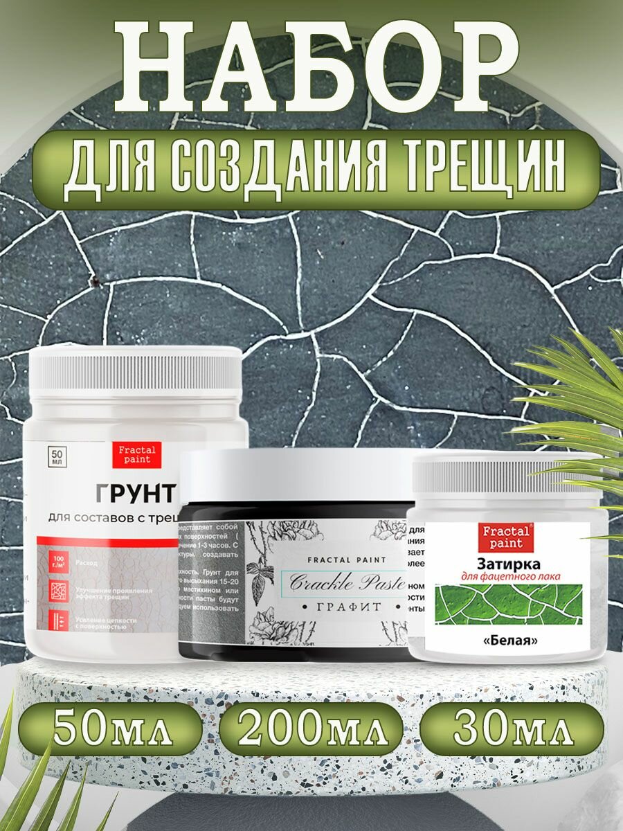Комбо для создания трещин (графит 200 мл + грунт 50 мл + затирка "Белая" 30 мл) информация: