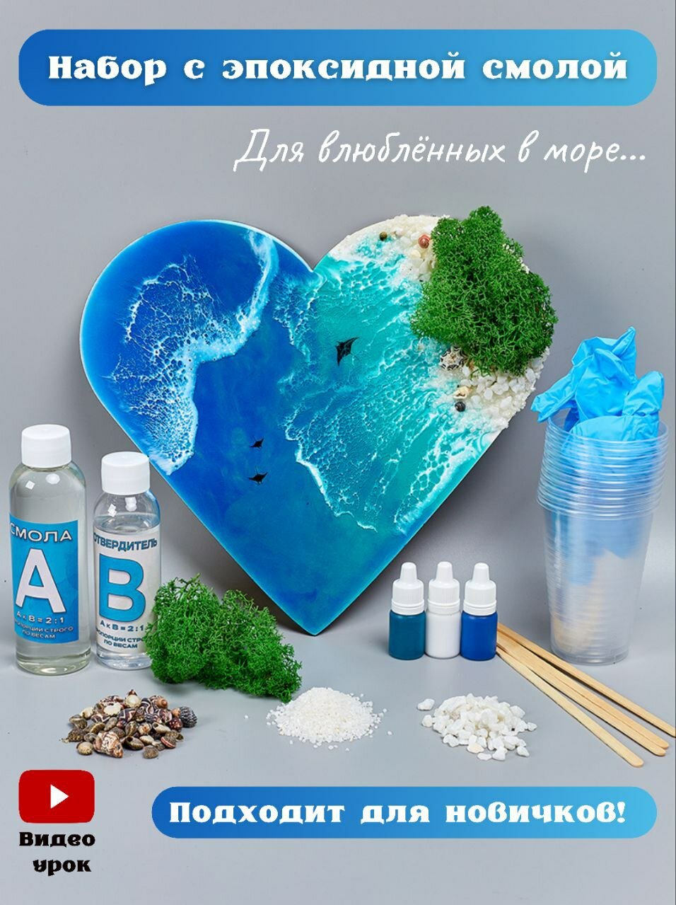 Творческий набор для рисования эпоксидной смолой в технике Resin Art остров "Сердце-Море". Домашнее творчество для взрослых и детей. Арт терапия. информация: