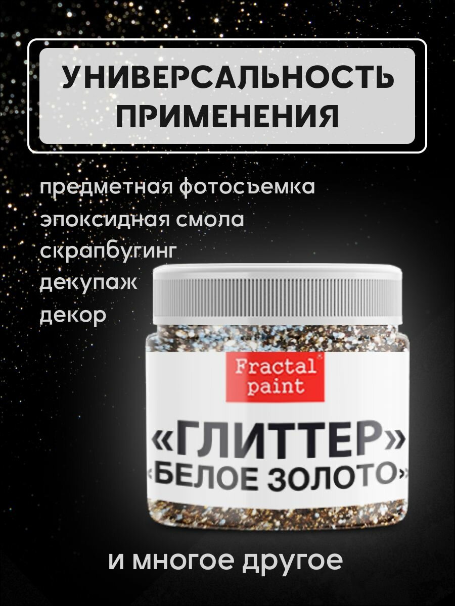 10 цен на Блестки глиттер для творчества Fractal Paint "Белое золото" (20 мл)