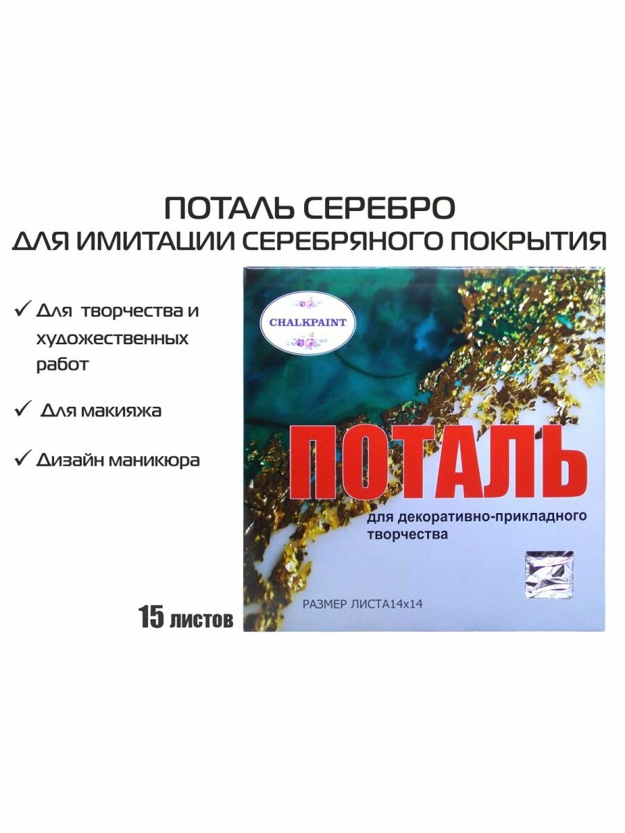 Поталь Chalky Pain для декорирования твердой поверхности, 15 листов, серебро информация: