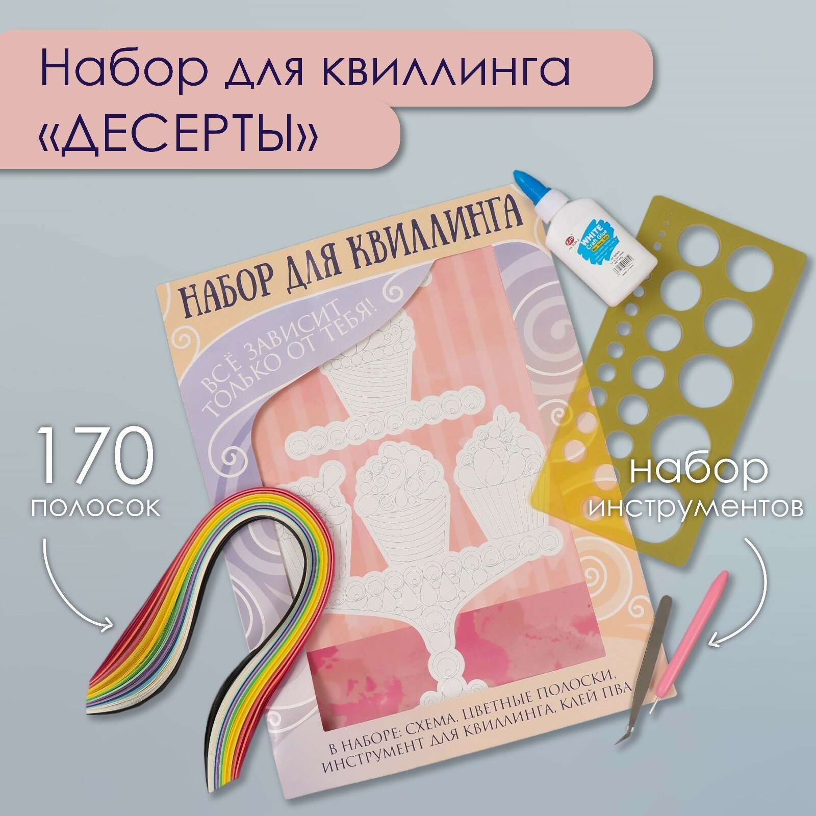 10 цен на Набор для квиллинга 170 полосок с инструментами "Десерты" 25х33,7 см, 10501017