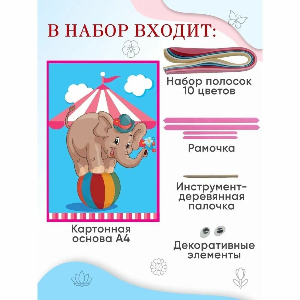 Набор для квиллинга ArteNuevo "Слон", картон, бумага, деревянная палочка (QW-19) информация: