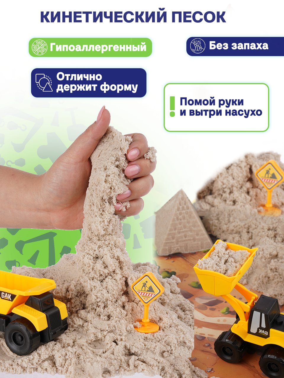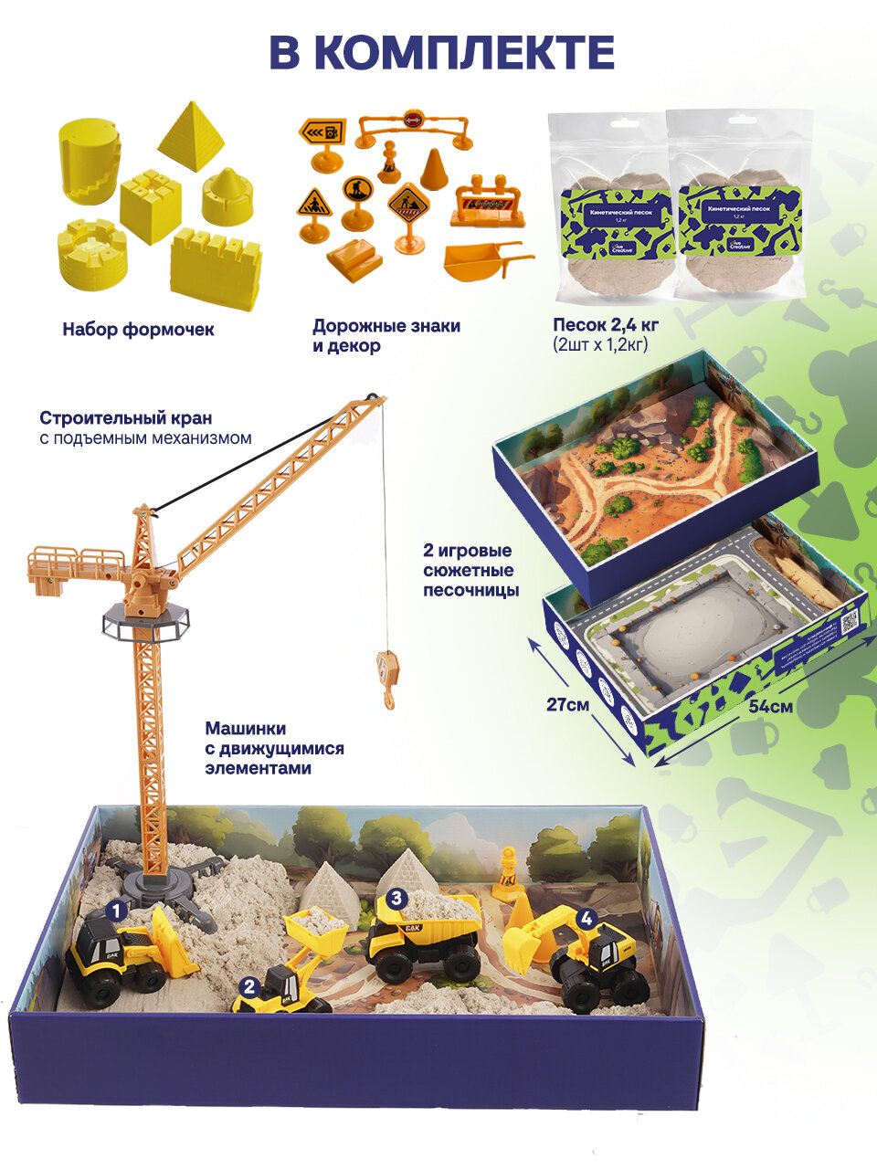 Кинетический песок с песочницей Give Creative, с формочками, машинками, краном и игрушками, 2,4 кг информация: