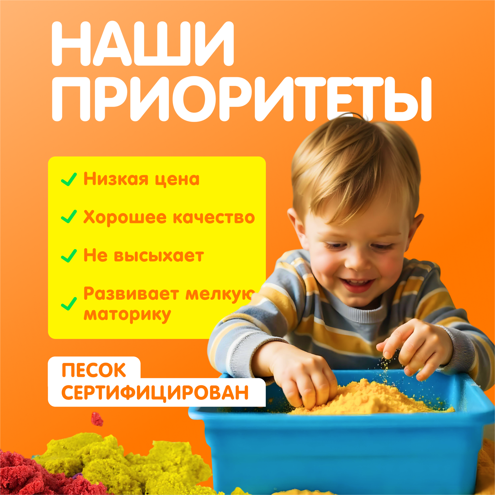 0 отзывов, средняя оценка 0. Чтобы купить «Кинетический песок 3 кг POYDA, 6 цветов песка для лепки, подарочный набор для детей» по лучшей цене мы сканируем авито, алиэкспресс, маркет, озон, савеловский, плеер, горбушку, беру, официальные сайты и находим минимальную. Администрация не несет ответсвенность актуальность цен на Кинетический песок 3 кг POYDA, 6 цветов песка для лепки, подарочный набор для детей, более подробно узнавайте на сайте магазина.