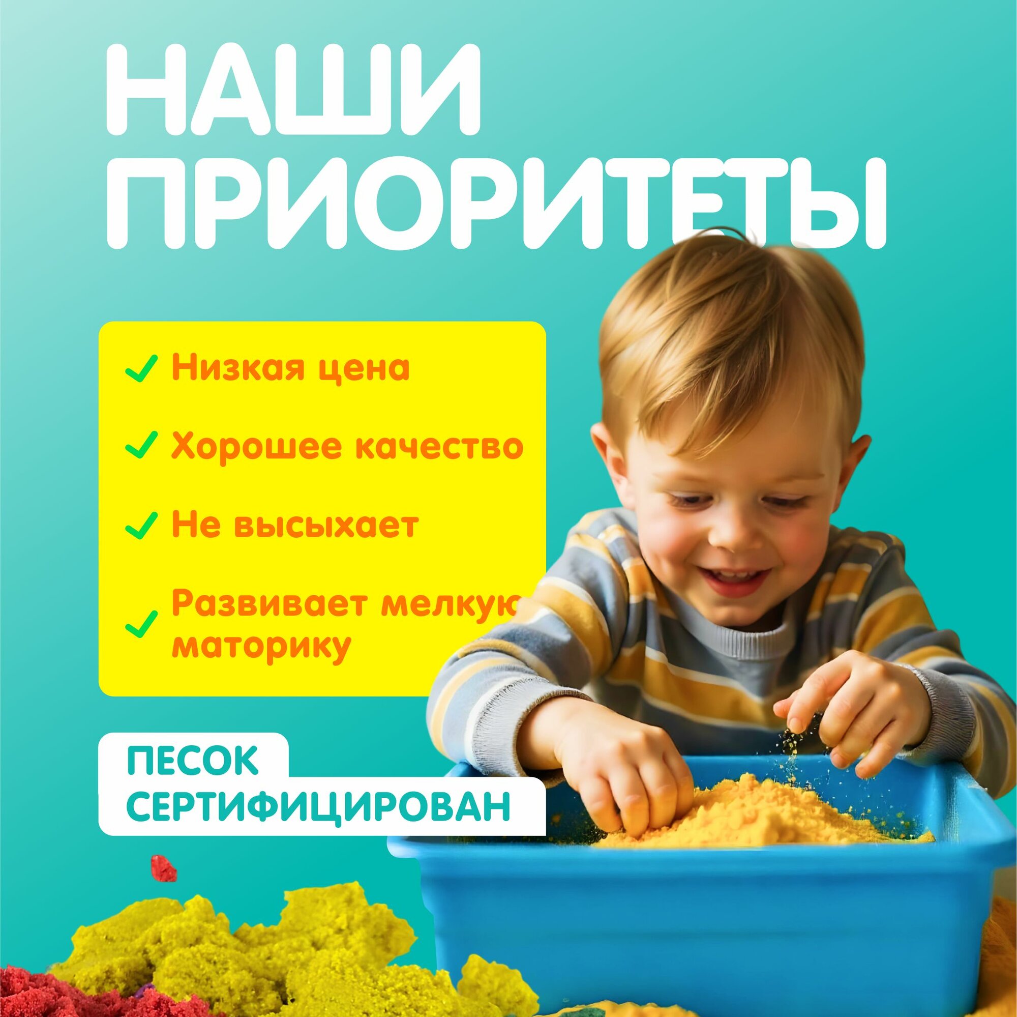 Отзывы на Кинетический песок 2 кг POYDA, 4 цвета песка для лепки, подарочный набор для детей