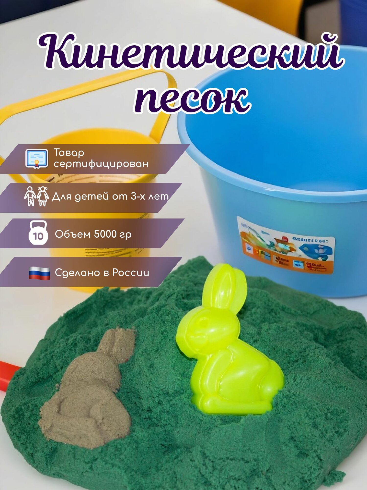 Кинетический песок "ЗадорПласт", ароматизированный, 5кг, зеленый, с формочками информация: