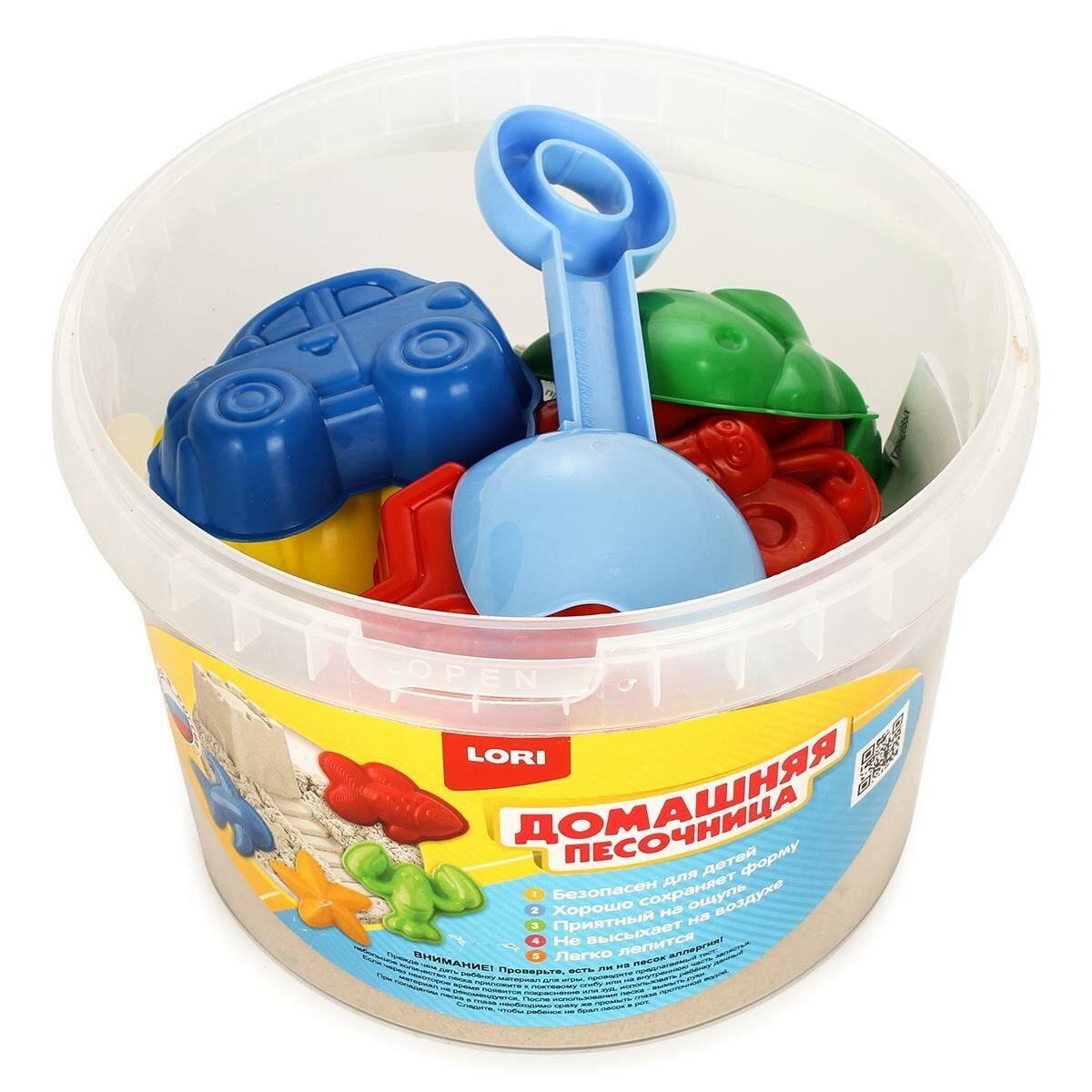 10 цен на Домашняя песочница "Морской песок 1,5кг + формочки + совочек" (Lori)