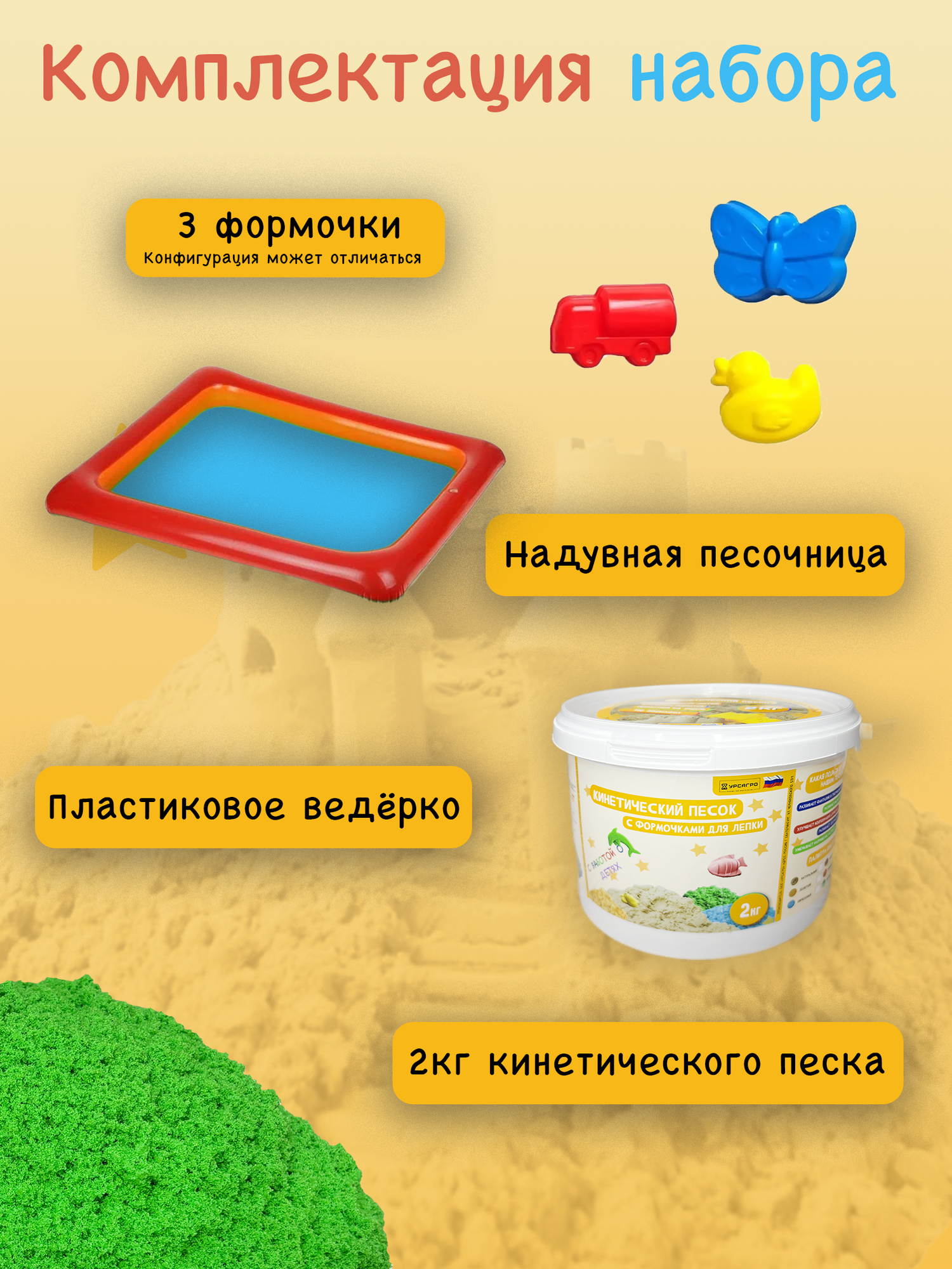 Кинетический песок Урсагро "Зелёный", с песочницей, формочками, 2 кг информация: