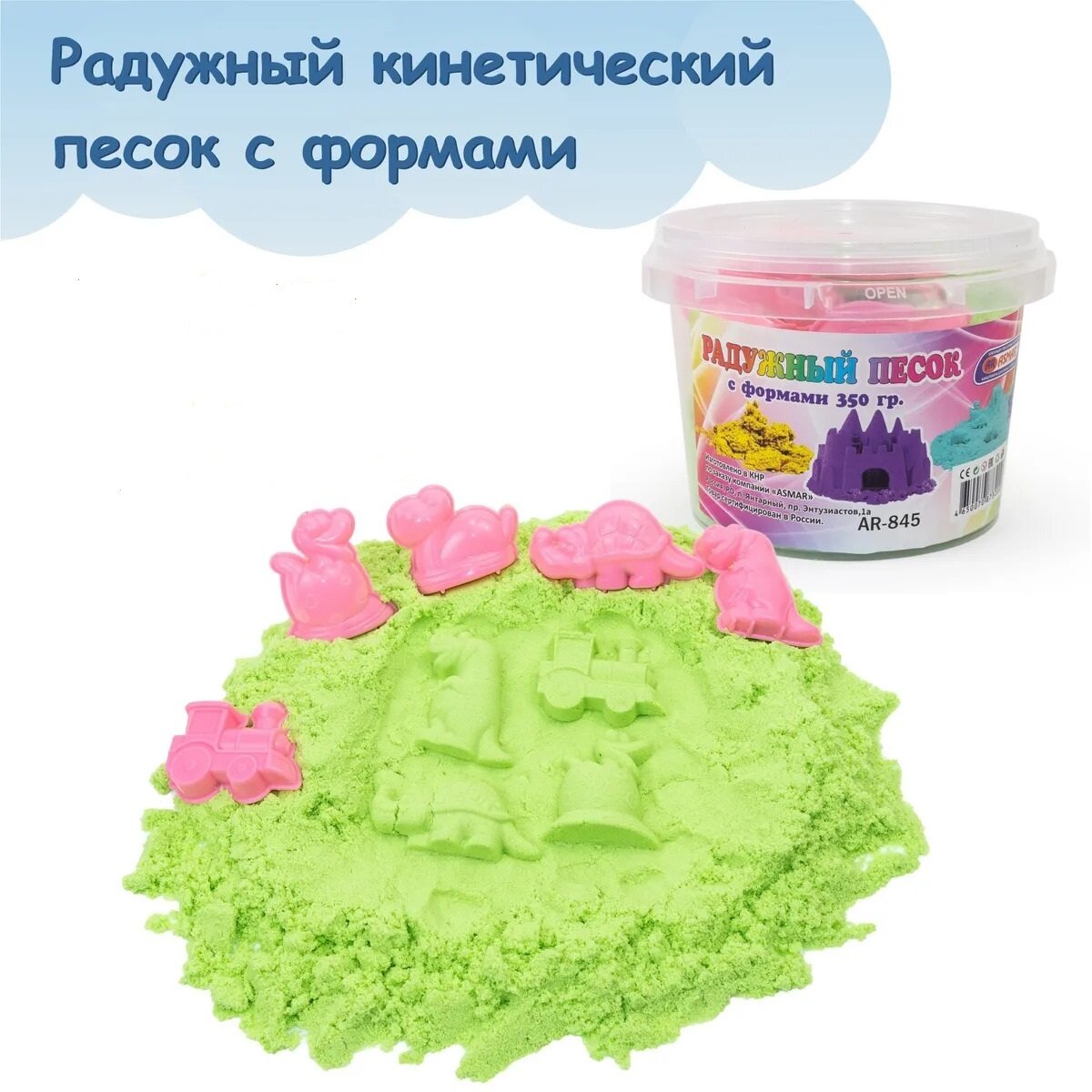 Радужный кинетический песок с формами для лепки 350 гр. (Зеленый) информация: