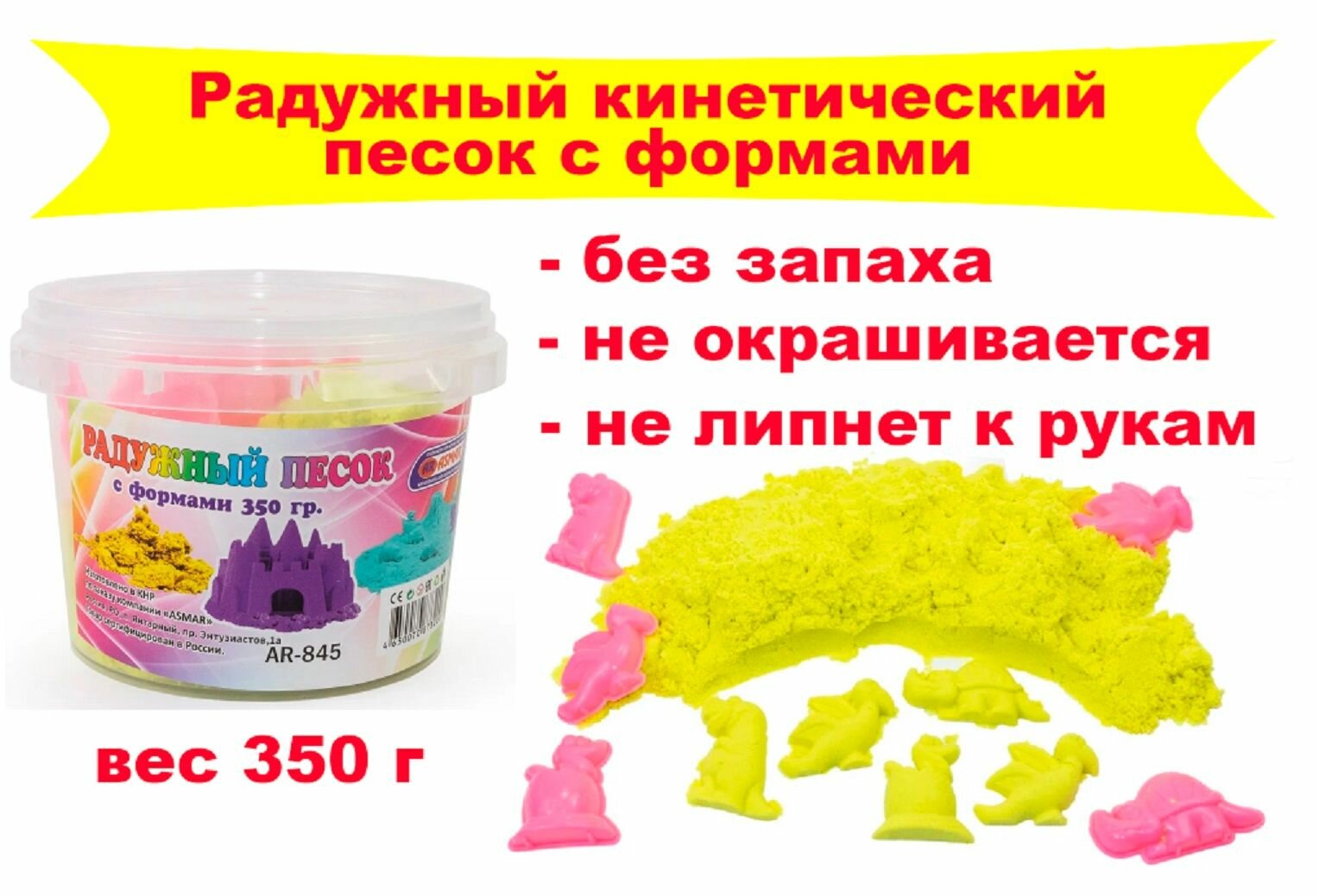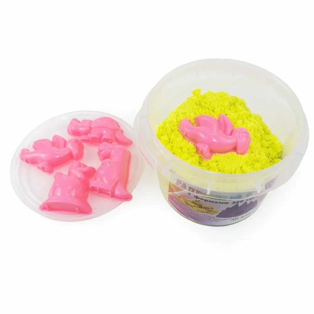 10 цен на Радужный кинетический песок с формами для лепки желтый, 350 гр.