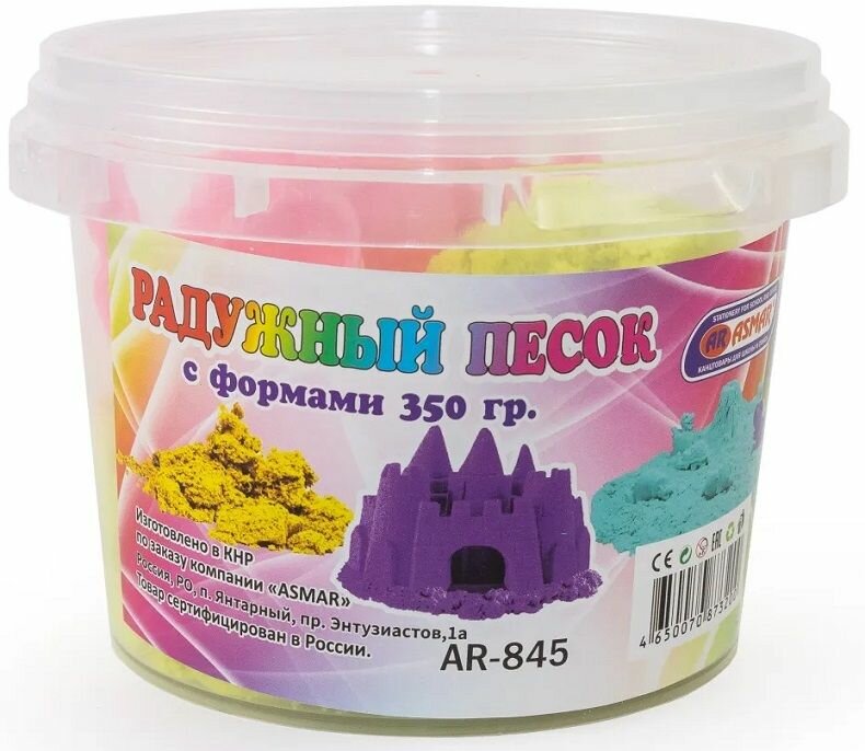 Радужный кинетический песок с формами для лепки желтый, 350 гр. информация: