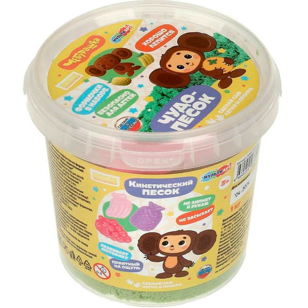 Набор для рисования песком мульти АРТ Кинетический песок Чебурашка с формочками в ведре, зелёный, 1 информация: