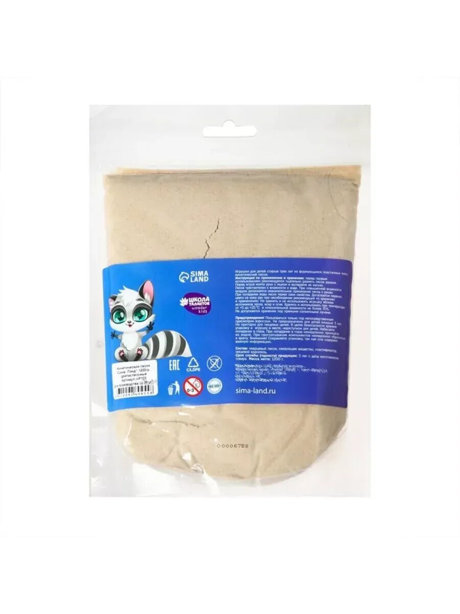 Песок для лепки кинетический, цвет песочный, 2000г, пакет, BRAUBERG KIDS, код 1С, 666002