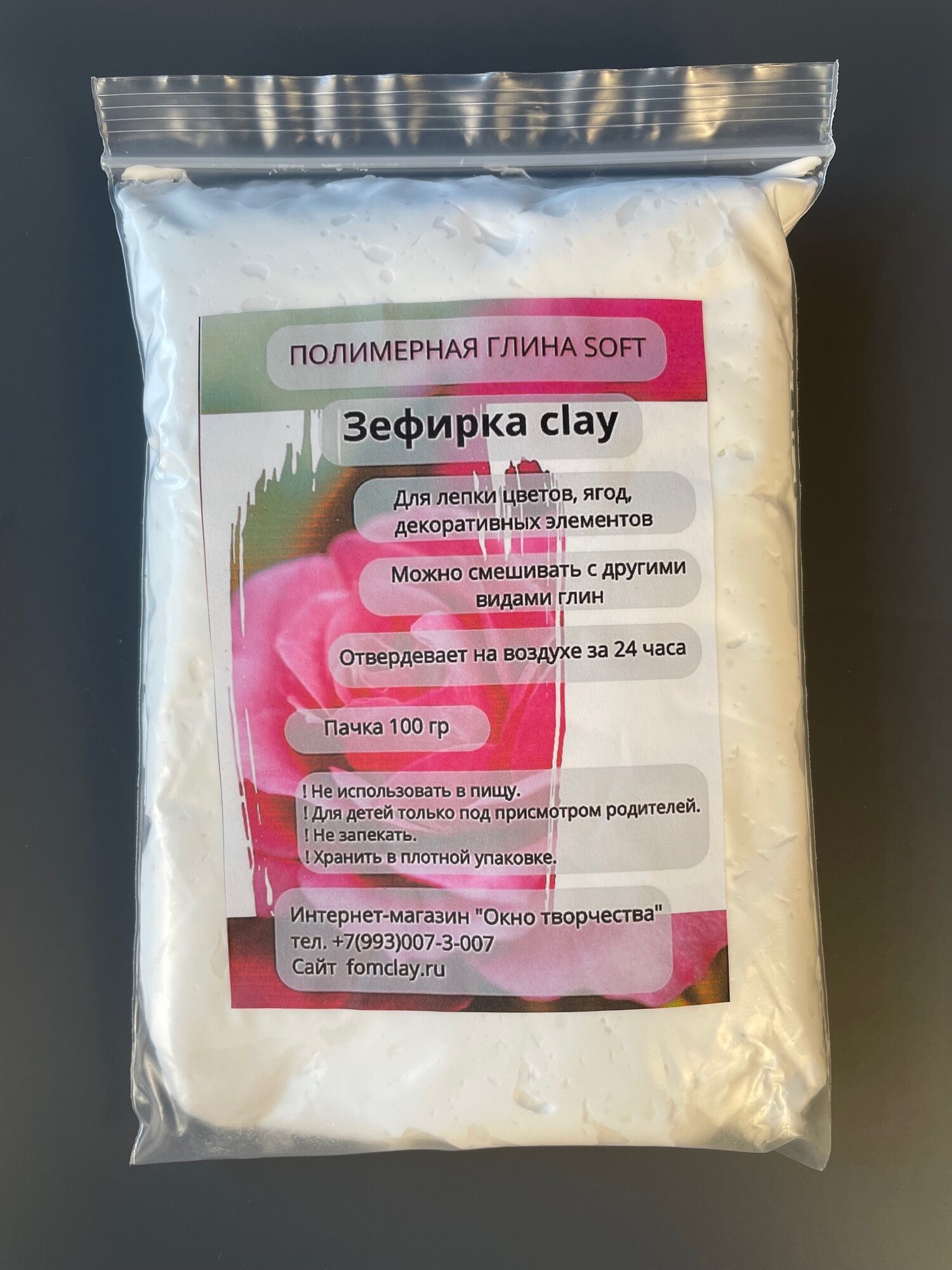 Полимерная глина "Зефирка", для цветов, самозатвердевающая, белый цвет, 100 г+подарок информация: