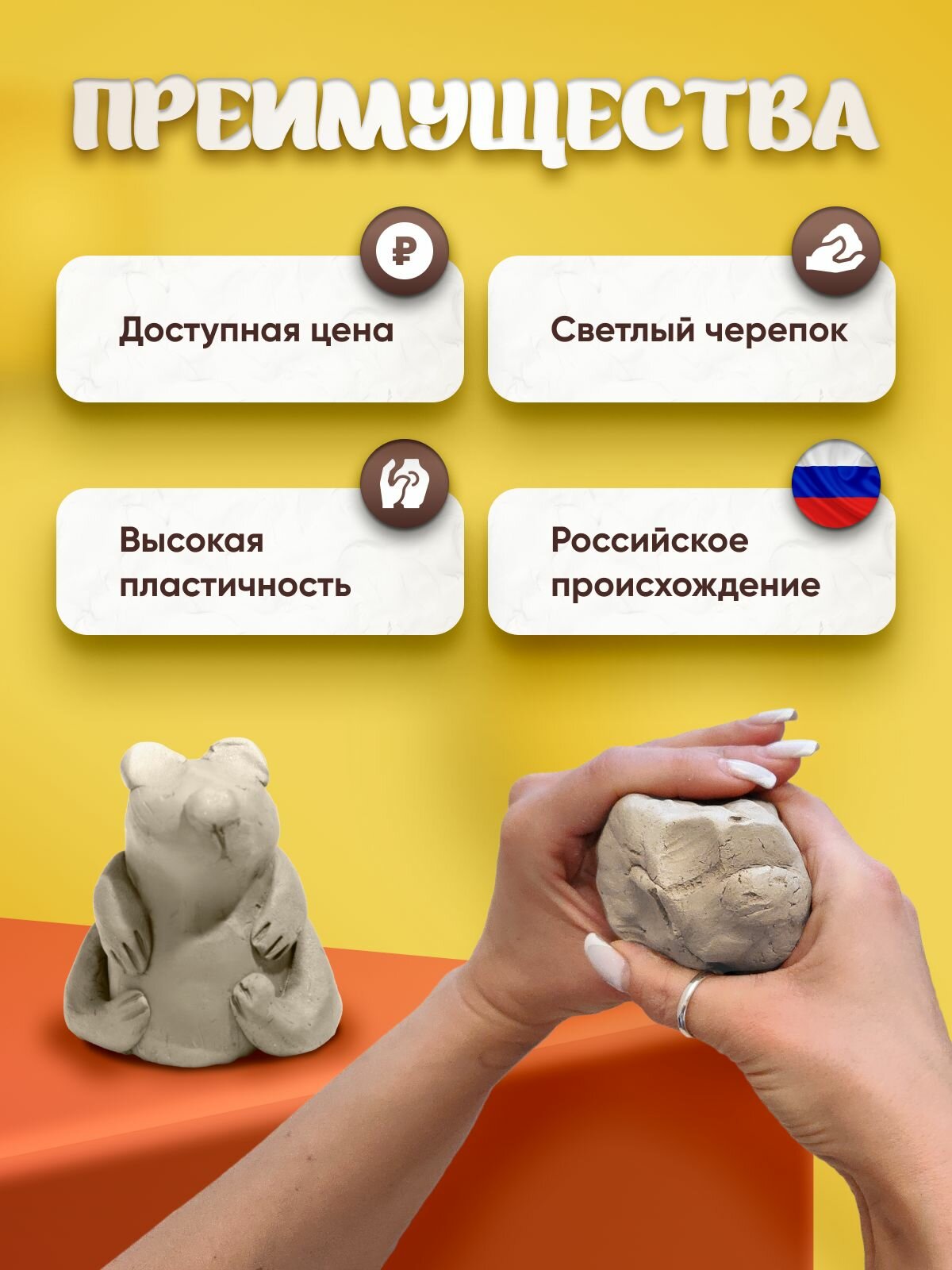 Белая натуральная глина Светлячок шамот 0-0,5 мм. 10 кг для лепки информация: