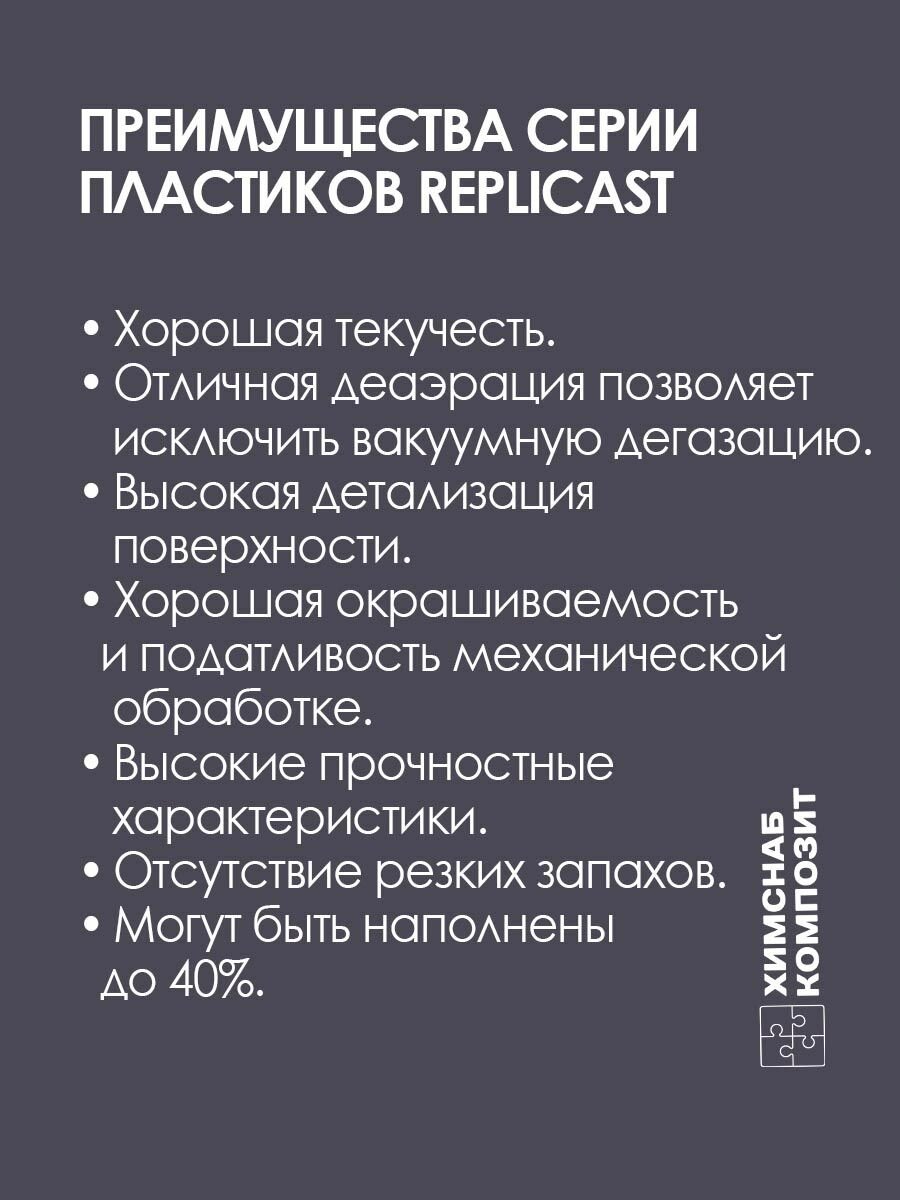 Пластик жидкий литьевой полиуретановый двухкомпонентный для заливки в форму, 1100 Replicast 1,5 кг 1 767 ₽