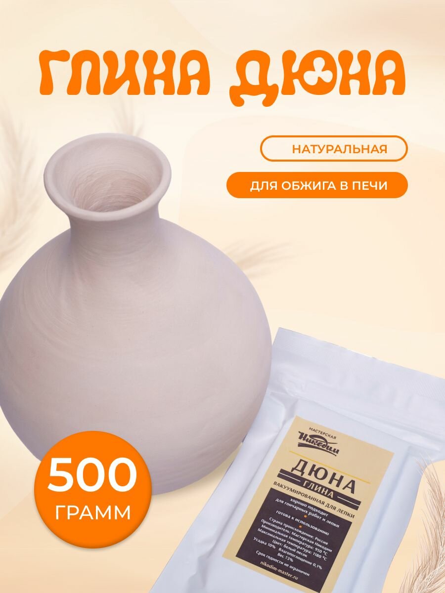 Глина для лепки и гончарного круга натуральная "Дюна" 500гр запекаемая информация: