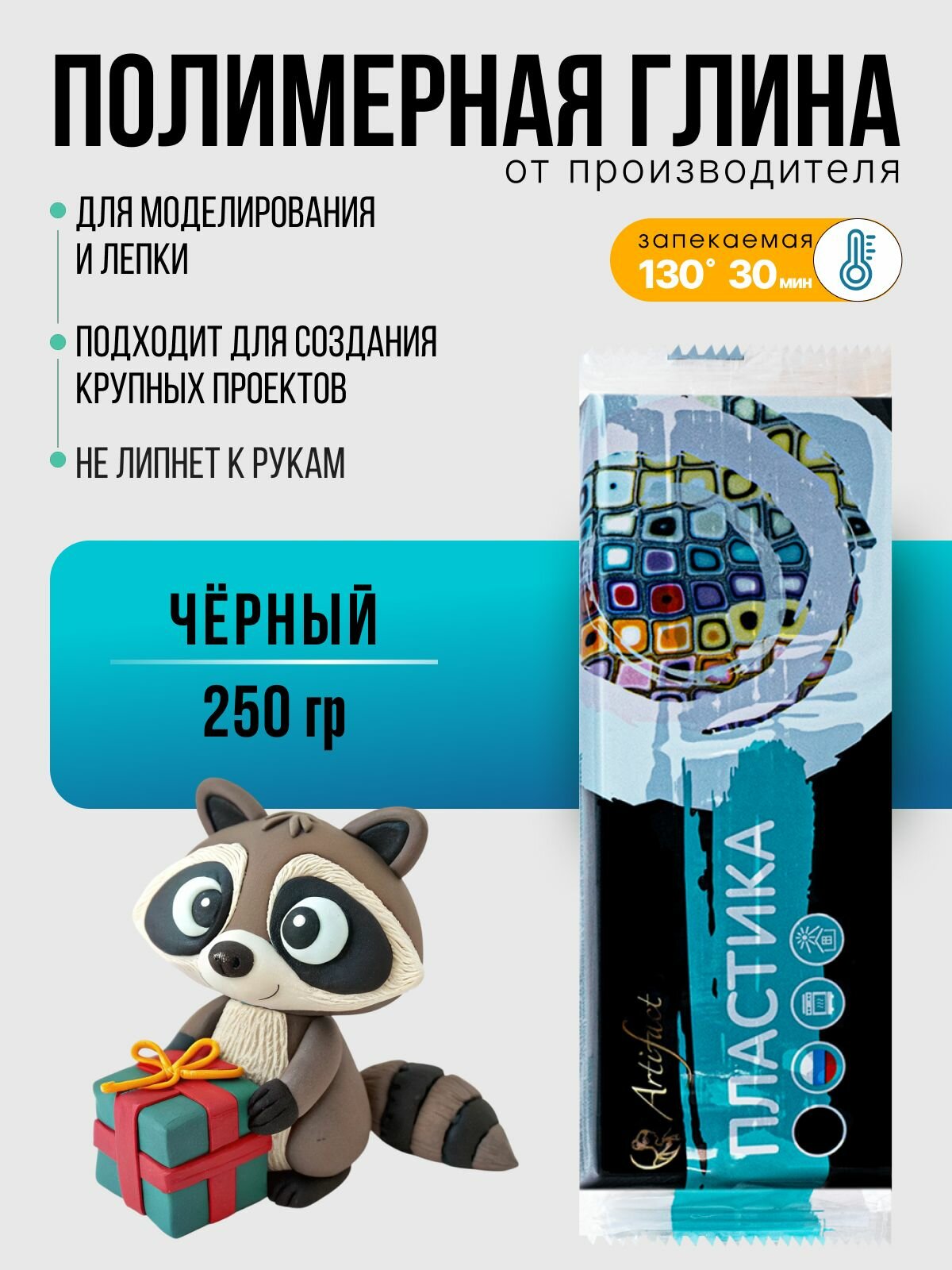 Полимерная глина черная, пластика запекаемая Артефакт, брус 250 г информация: