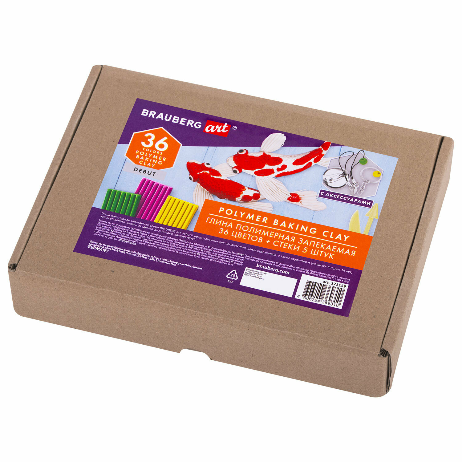 Глина полимерная запекаемая, набор 36 цветов по 20 г, с аксессуарами, в гофрокоробе, BRAUBERG, 271159 информация: