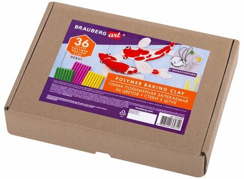 Глина полимерная запекаемая, набор 36 цветов по 20 г, с аксессуарами, в гофрокоробе, BRAUBERG, 271159