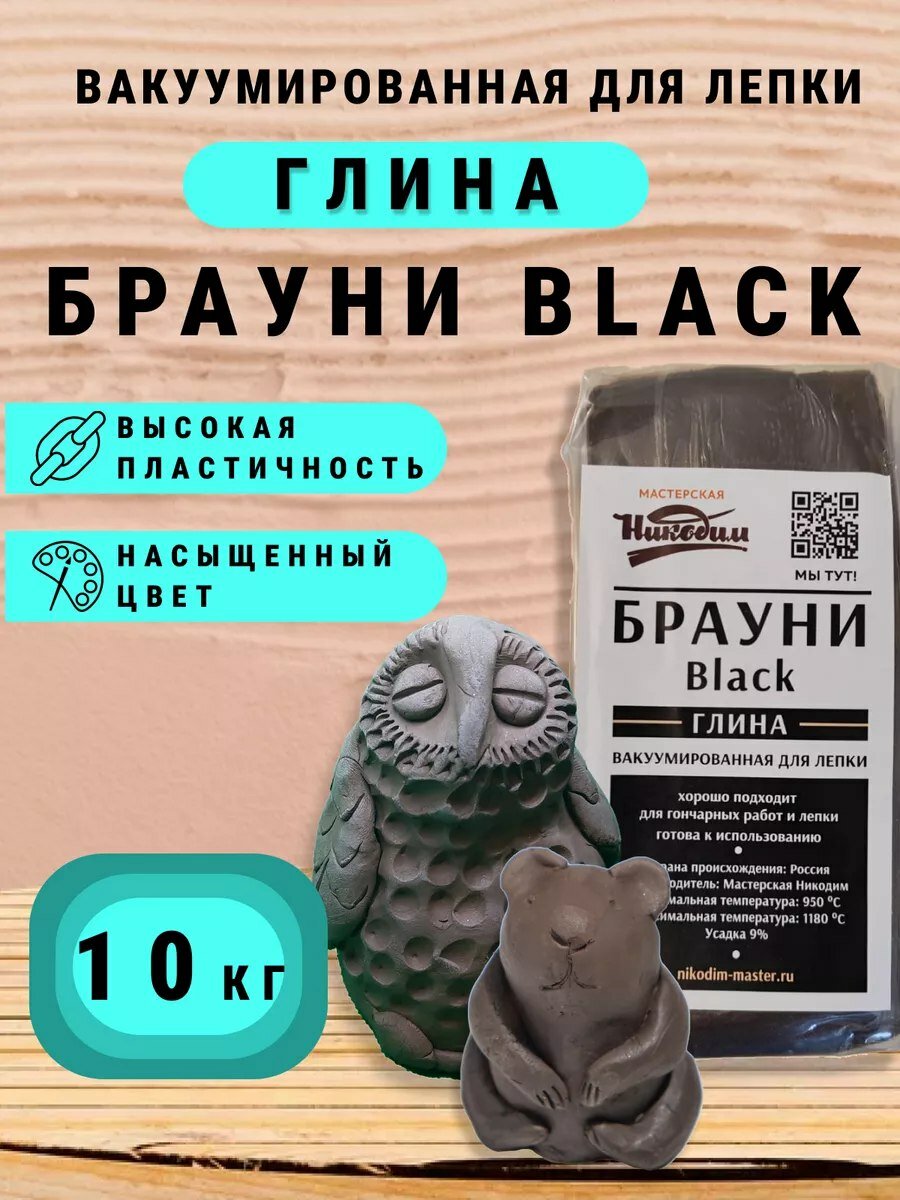 10 цен на Брауни Black Глина натуральная, черная для лепки и гончарного круга,10 кг